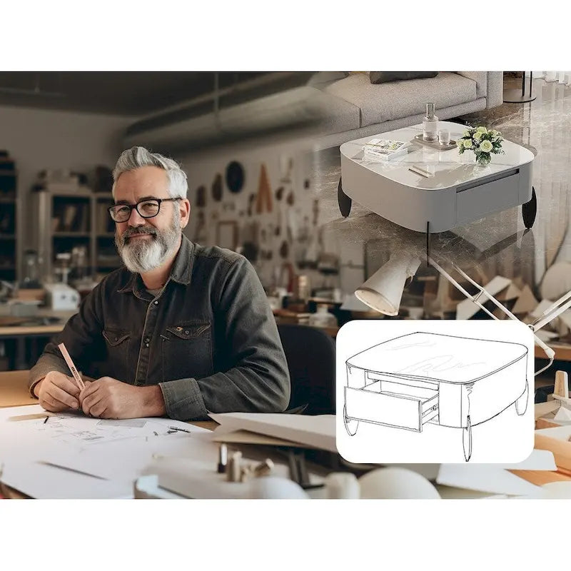 White Square Coffee Table with 2 Drawers